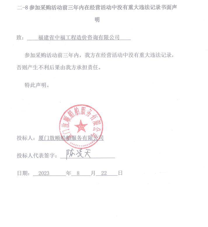 | 1 | 廈門敖順船舶服務(wù)有限公司 | “山海交響”船舶管理及船員外包服務(wù) | 詳見文件 | 詳見文件 | 自合同簽訂生效之日起算服務(wù)期2年 | 詳見文件 |