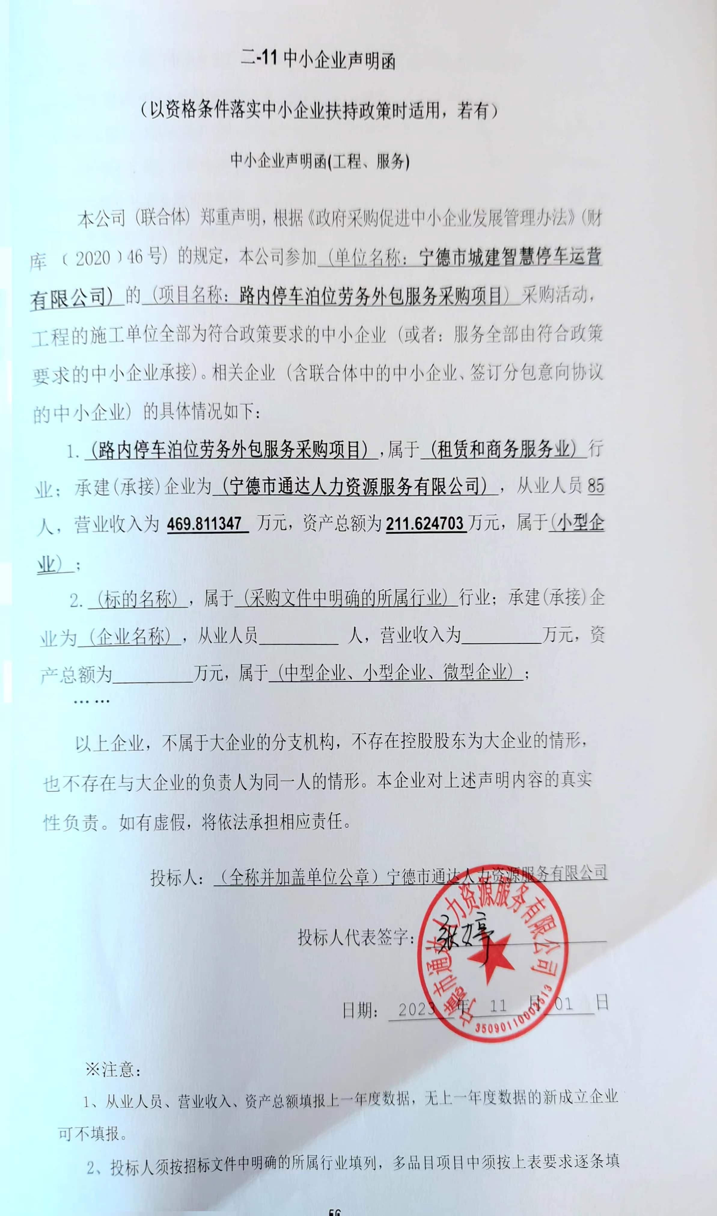| 1 | 寧德市通達人力資源服務(wù)有限公司 | 路內(nèi)停車泊位勞務(wù)外包服務(wù)采購項目 | 路內(nèi)停車泊位勞務(wù)外包服務(wù),具體詳中標人投標文件 | 按招標文件及投標文件執(zhí)行,具體詳中標人投標文件。 | 本項目服務(wù)期限為1+1+1年,每服務(wù)一年后經(jīng)甲方考核滿意后方可續(xù)簽,續(xù)簽不超過2次,但第二年、第三年合同價以第一年價格為準,不得變動。若不續(xù)簽,乙方有義務(wù)服務(wù)至新一輪招標完成后,所產(chǎn)生的服務(wù)費用按實際服務(wù)期限和合同價款予以支付。合同到期后,甲方新的勞務(wù)管理單位仍未采購,乙方有義務(wù)按第一年合同內(nèi)容及價格繼續(xù)履行服務(wù),至新一輪招標完成后新的勞務(wù)管理單位入場止。 | 按招標文件及投標文件執(zhí)行,具體詳中標人投標文件。 |