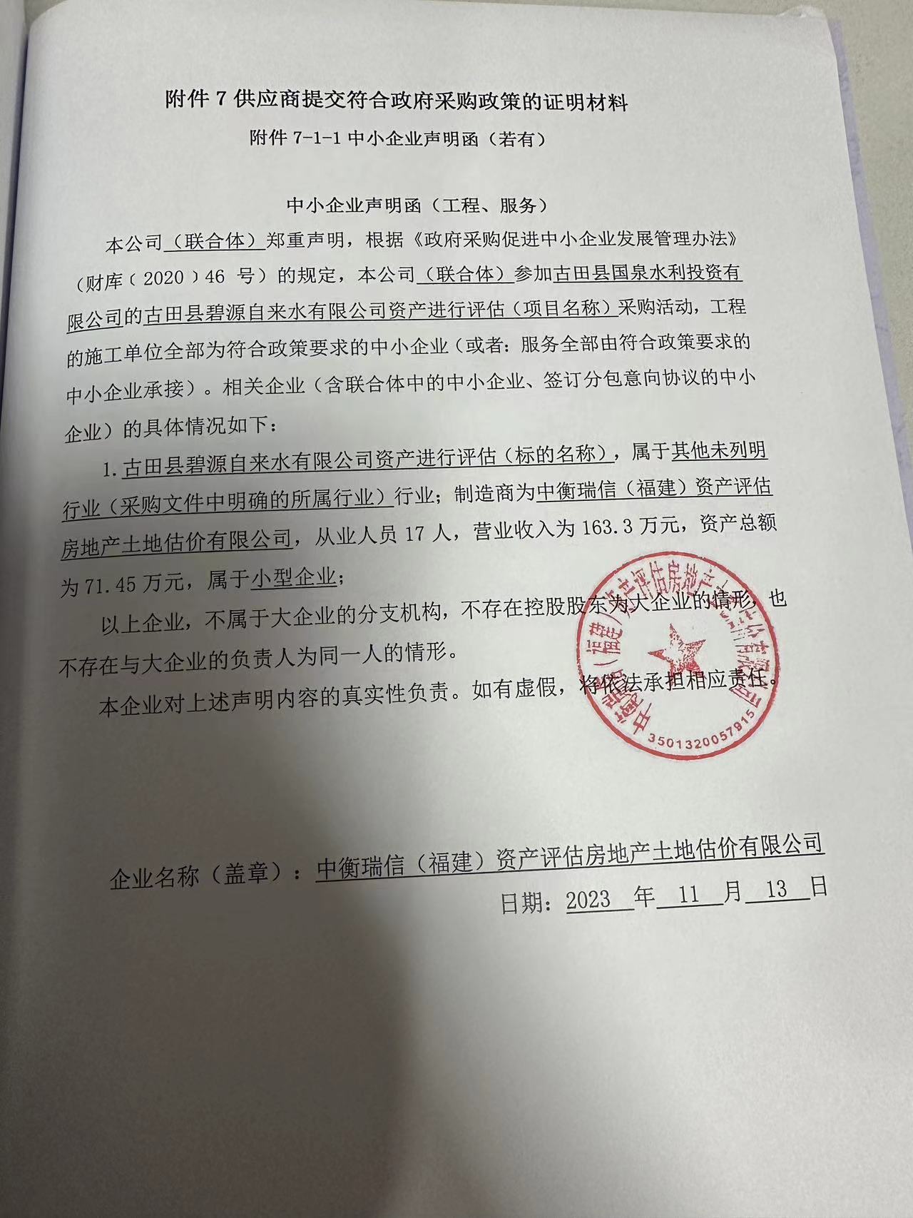 古田縣碧源自來(lái)水有限公司資產(chǎn)進(jìn)行評(píng)估 |