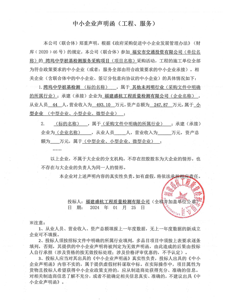 1    福建盛杭工程質(zhì)量檢測(cè)有限公司      灣塢中學(xué)樁基檢測(cè)      詳見響應(yīng)文件      詳見響應(yīng)文件      自合同簽訂之日起120日      詳見響應(yīng)文件