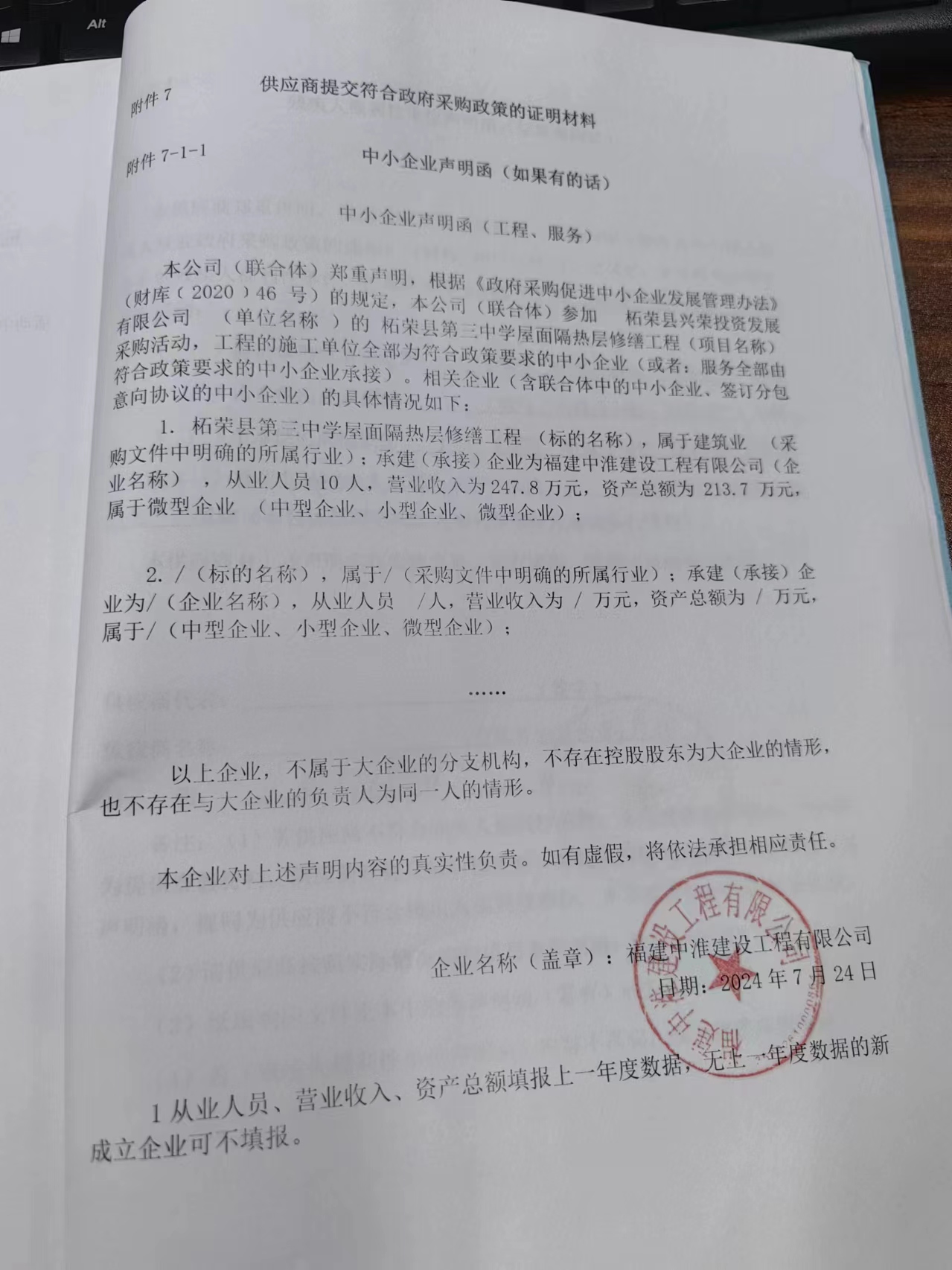 供應商名稱:福建中淮建設工程有限公司