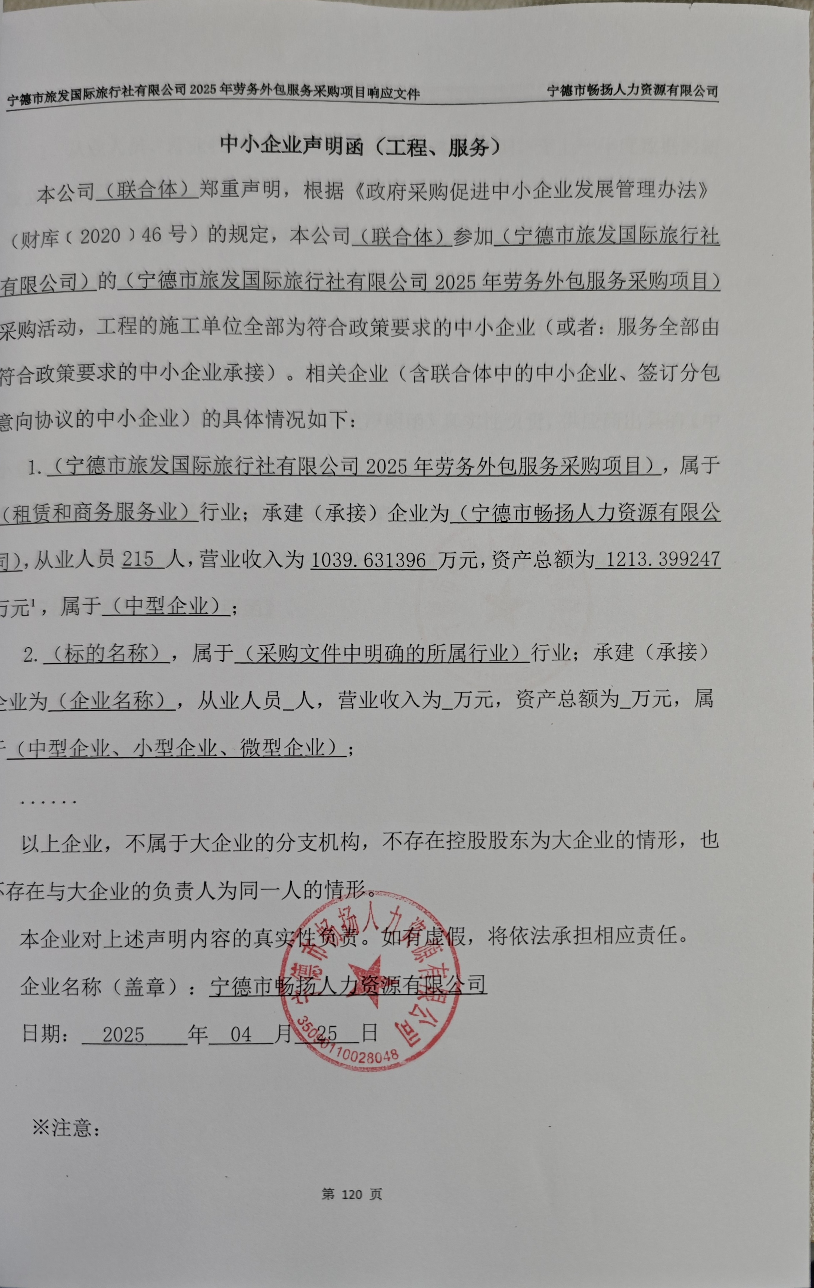 寧德市旅發(fā)國際旅行社有限公司2025年勞務外包服務 |