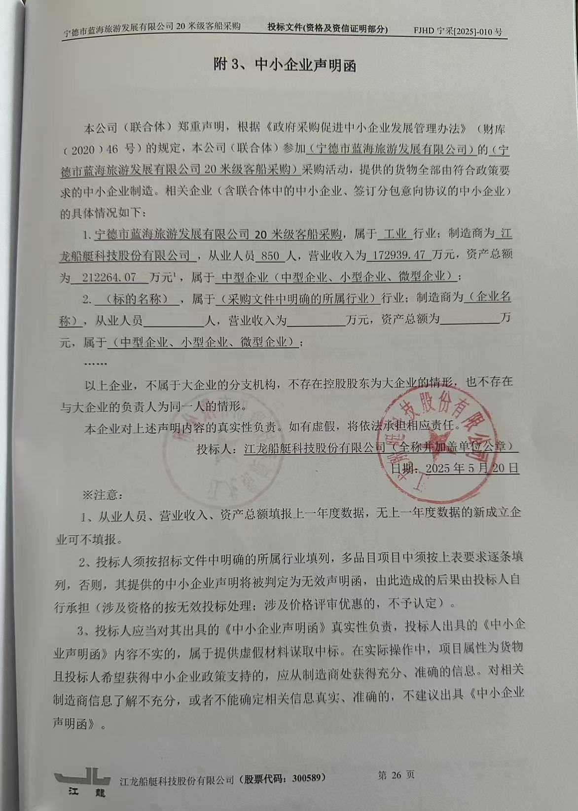 寧德市藍(lán)海旅游發(fā)展有限公司20米級(jí)客船采購(gòu) |