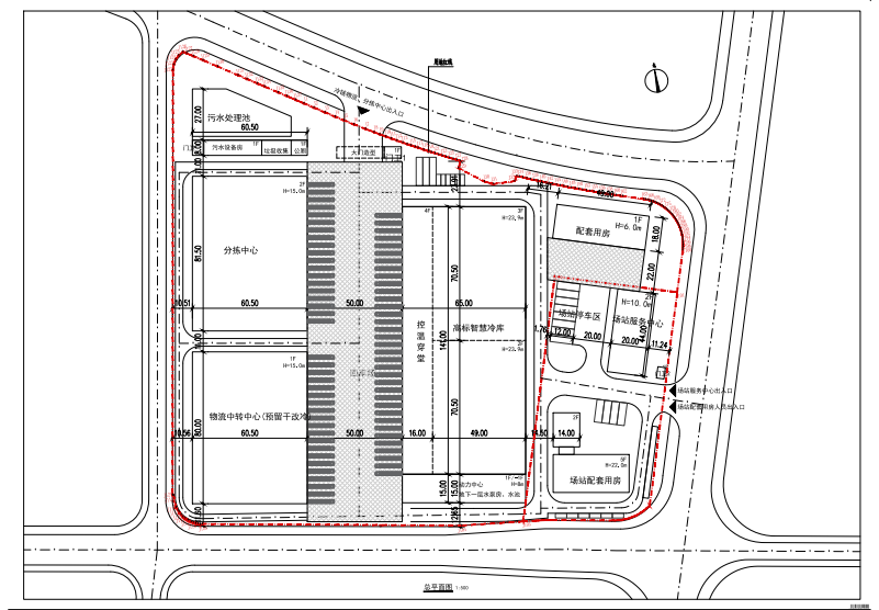 3.項目規(guī)模:主要建設高標智慧冷庫、物流中轉中心(5240㎡)、分揀中心(10800㎡)、一件代發(fā)中心、交通場站配套用房、交通場站服務中心、污水處理(520㎡)和兩棟門衛(wèi)。項目分四個功能區(qū),冷庫倉儲、冷鏈物流區(qū)、分揀中心、交通場站配套區(qū)。